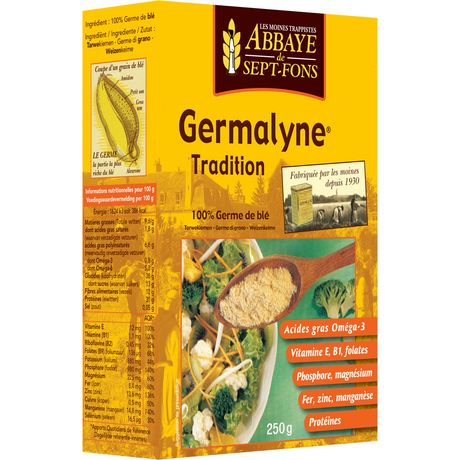 Cette recette traditionnelle transmise par les moines de l'abbaye de Sept-Fons depuis 1930 est composée à 100% de germe de blé. Source de vitamines, de minéraux et de protéines, cet assaisonnement est à saupoudrer directement sur les salades, les plats cuisinés, ou à incorporer dans les laitages.