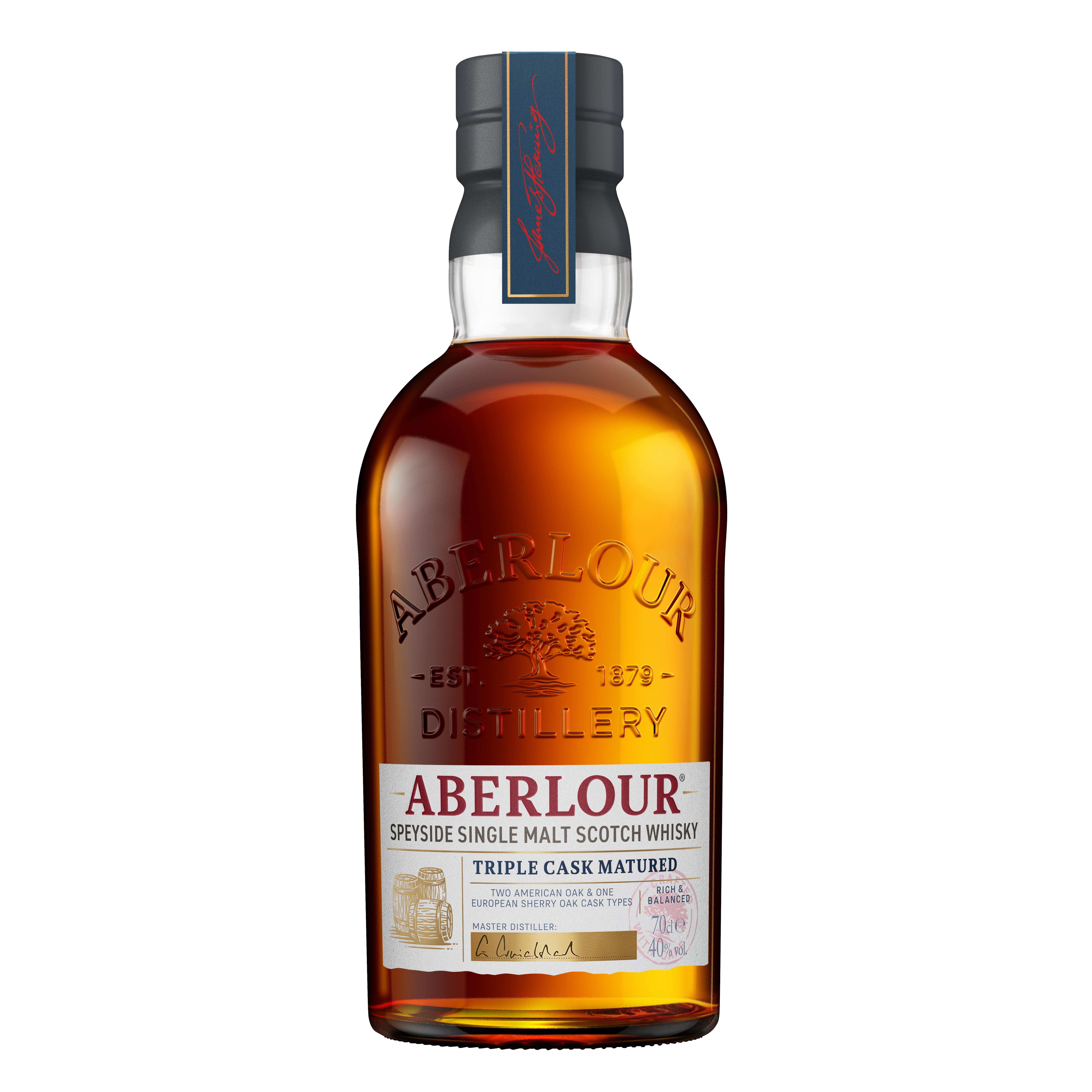 Aberlour Triple Cask est la première expression d'Aberlour issue d'une triple maturation en deux types de fûts de chêne américain différents ayant contenu du Bourbon et un type de fûts de chêne européen ayant contenu du Sherry. Ce Single Malt est le juste équilibre entre des notes sucrées et subtilement épicées.