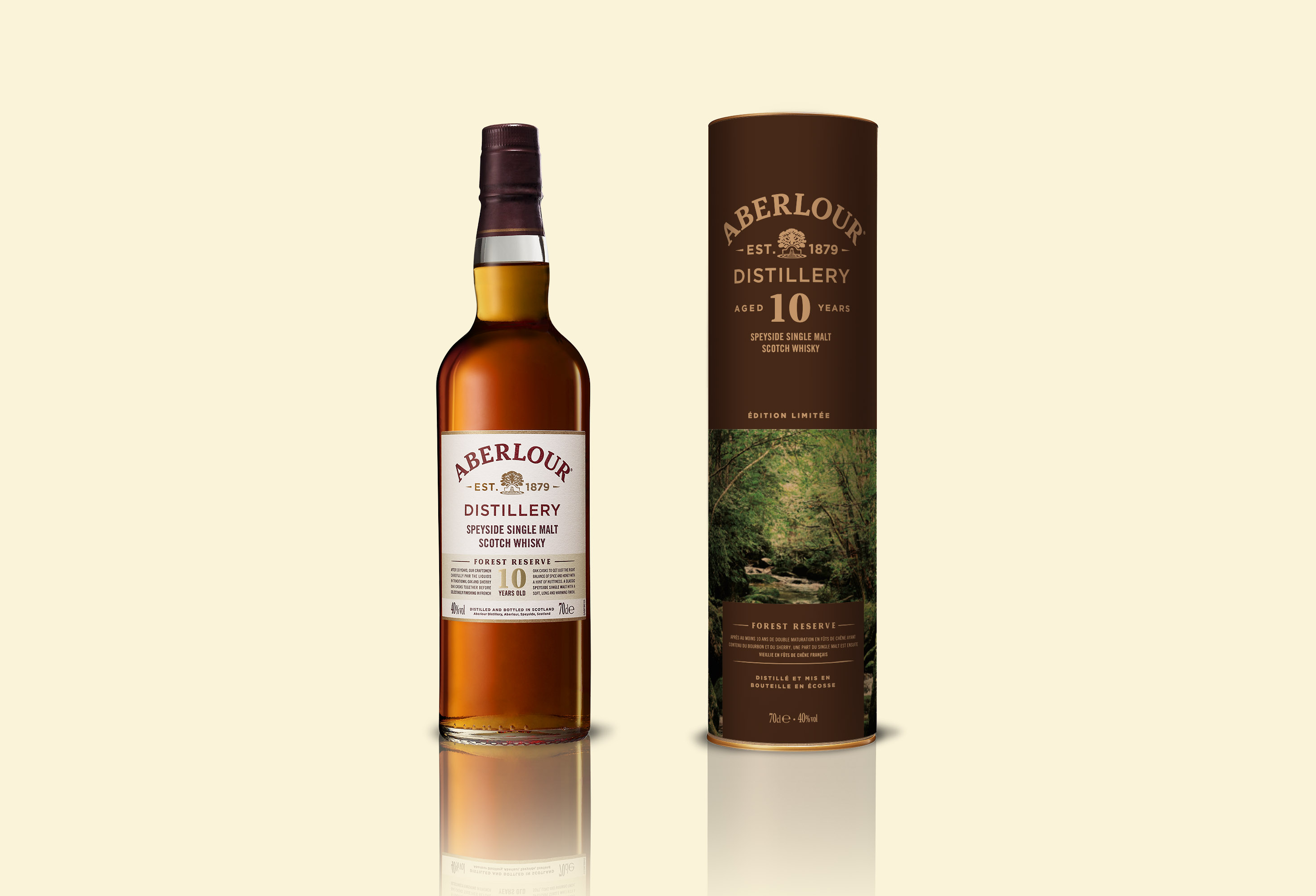Fidèle à la signature des Single Malts Aberlour, Aberlour 10 ans Forest Reserve est issu d'une double maturation en fûts de chêne ayant contenu du Bourbon et du Sherry et dont une part du Single Malt est ensuite vieillie en fûts de chêne français, lui conférant ainsi des saveurs complexes et équilibrées.