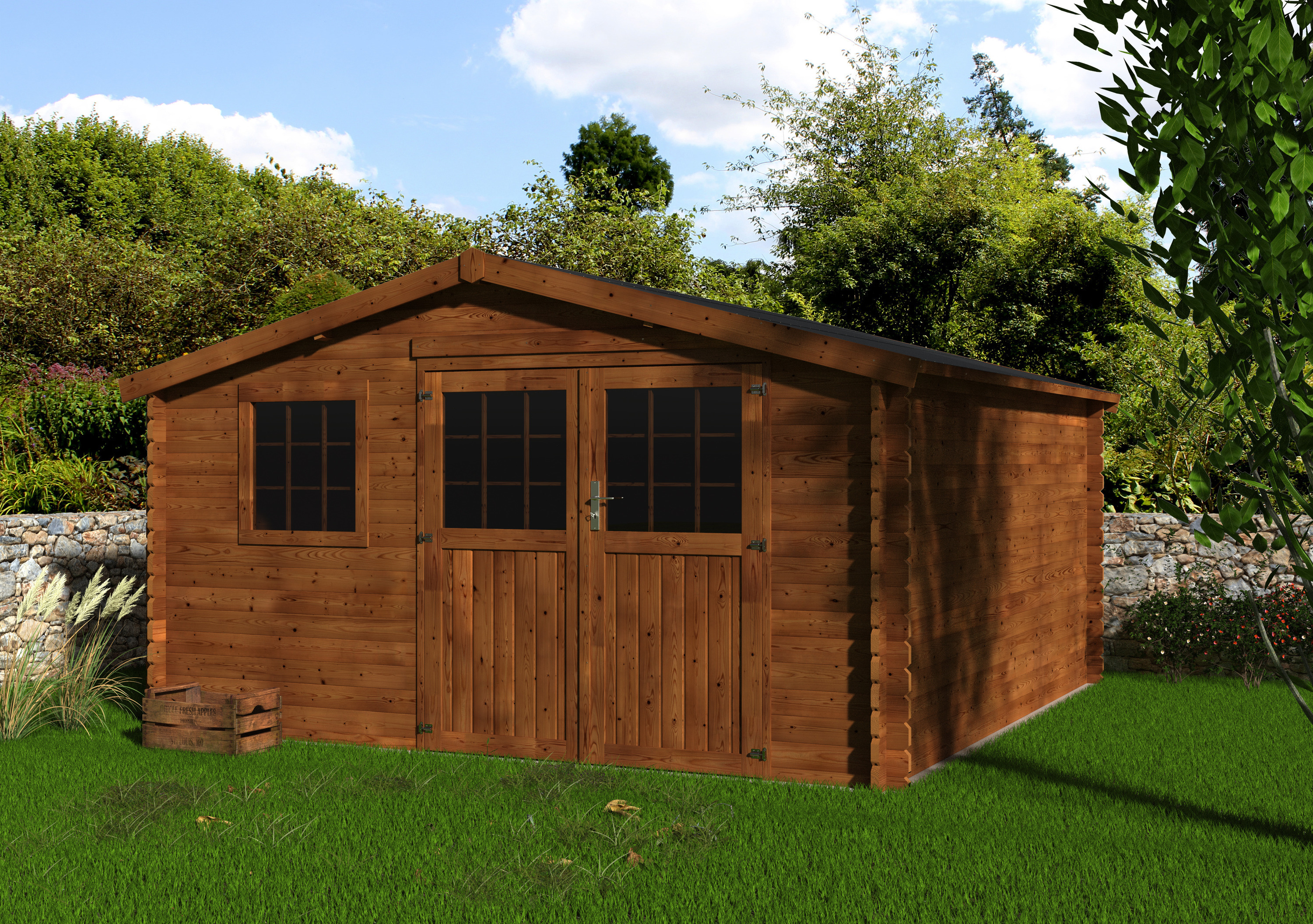 L'abri bois Vallauris en madriers emboités de 34 mm d'épaisseur est une valeur sûre . Ce chalet de jardin de haute qualité déjà traité autoclave vous évite un entretien fastidieux avant de monter celui ci. le traitement retarde la nécessité de traitement du bois. Cet abris en bois sera idéal pour ra