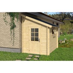 Incroyable, cette petite remise de 4,70 m², adossable à votre maison, est idéal pour ranger votre matériel de jardin, des vélos et même créer un vrai espace de bricolage ! De plus, sa forme prend très peu de place. La remise adossable est faite en madriers brut à lasurer de 28mm. Elle est équipée d'une porte simple vitrée et d'une fenêtre sur la partie latérale ouvrant vers l’extérieur. Cette petite remise est livrée avec une couverture de revêtement toit en feutre bitumé noir.