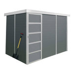: Abri de jardin - en épicéa - Épaisseur 19 mm - 1 porte avec plexi blanc - toit voliges 16 mm - Feutre bitumé - Peint en gris et blanc - Fabrication européenne.