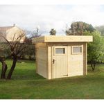 L'abri de jardin Miki est reconnaissable par son toit plat lui donnant un style contemporain. Idéal pour créer un petit atelier ou une nouvelle pièce à petit budget dans votre jardin. Ce chalet de jardin offre un rendu exceptionnel une fois peint. Il s'assemble en emboîtant les madriers d'une épaisseur de 19mm. Il s'ouvre par une porte simple et est constitué de deux fenêtres fixes en plexiglas : une en façade et l'autre sur la porte. La toiture est monopente en voliges de 19mm recouvertes d'un revêtement en feutre bitumé.