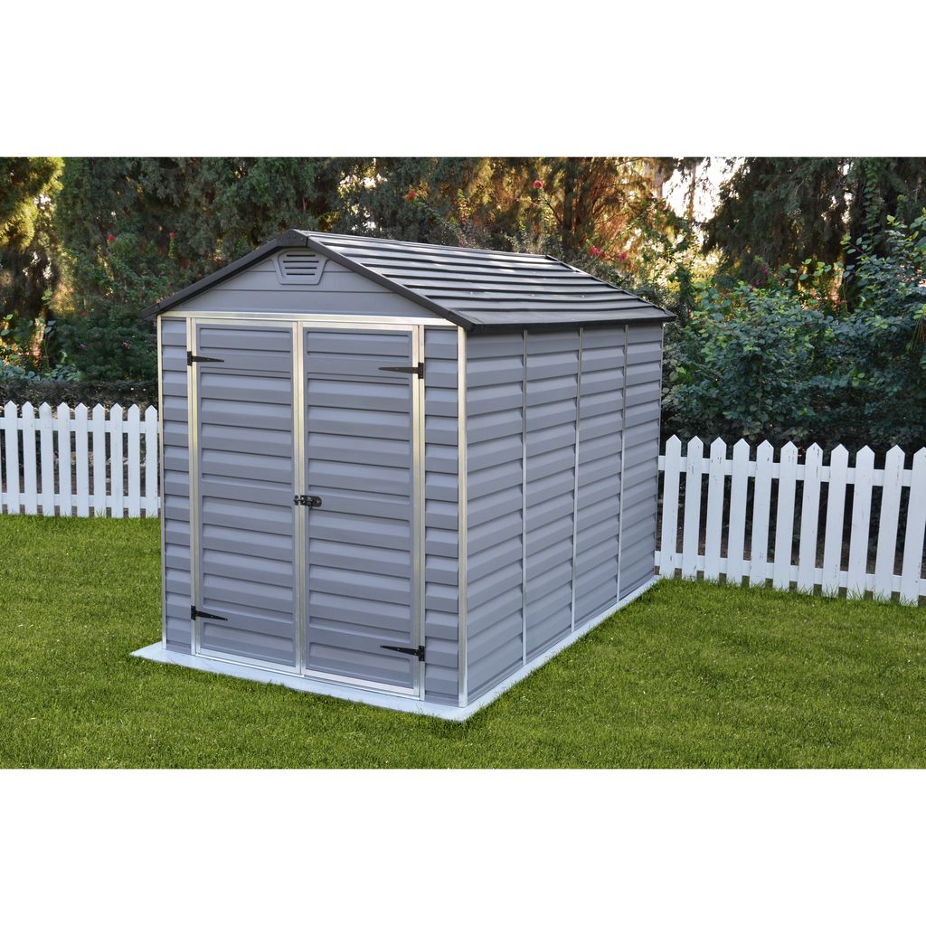 Aménagez-vous enfin un espace de rangement hors de la maison pour vos outils de bricolage et de jardinage. L'abri de jardin Sligo offre une surface de stockage très intéressante. Les parois sont en polycarbonate, assurant solidité et résistante aux UV. Les parois d'une épaisseur d'1mm repose sur une structure en aluminium, très résistante. Le chalet de jardin ne nécessite aucun entretien. La grille d'aération intégrée à l'avant de la façade permet d'éviter la condensation. Le loquet de la double porte battante permet de verrouiller l'intérieur.