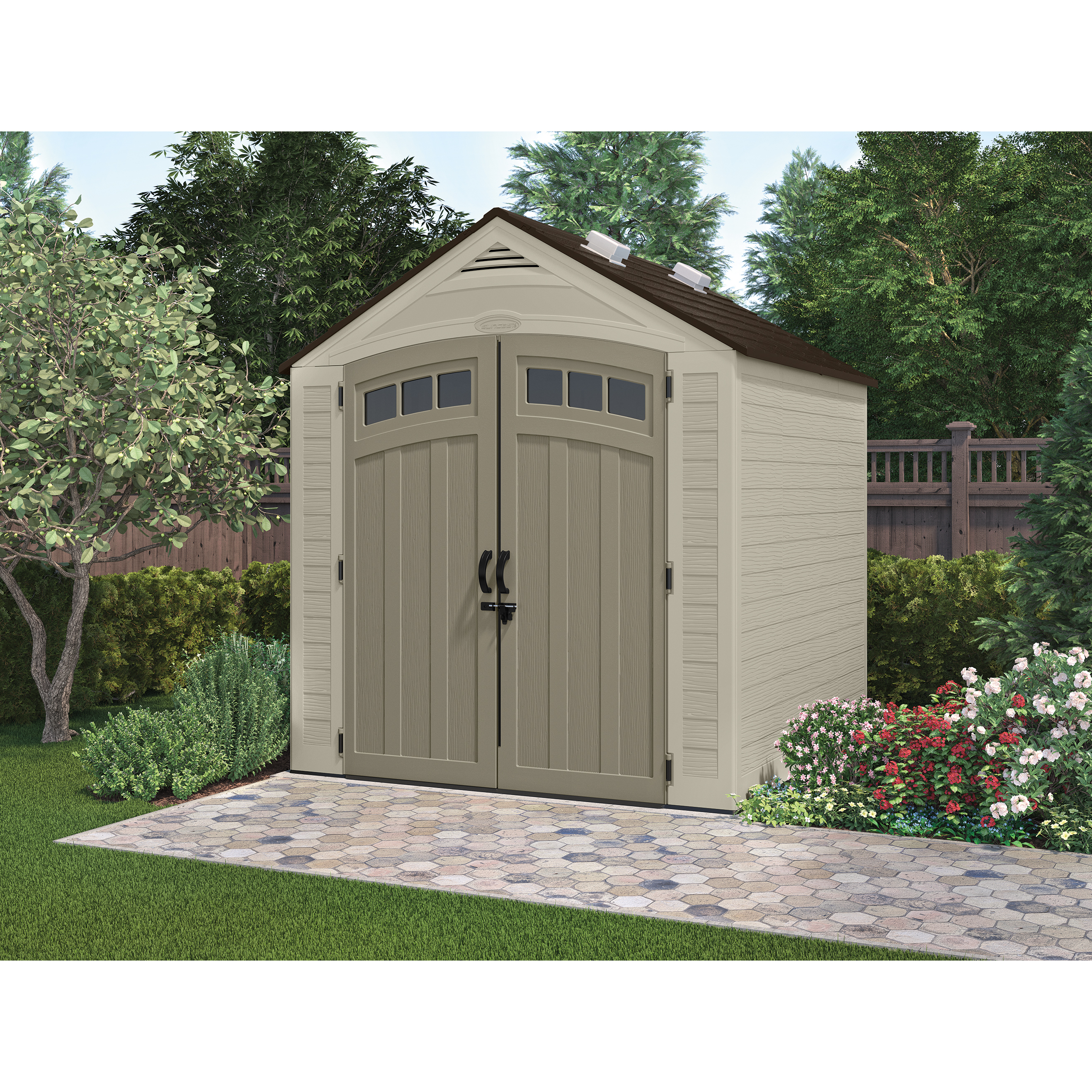 - Abri en polyéthylène haute densité “blow molded” (“moulé par soufflage”). - Toit noir imitation ardoise, portes taupe claire, panneaux gris clair. - Epaisseur des murs : 25 MM. - Renforts et poutres de toit en métal (peinture Epoxy). RESISTE A LA CORROSION. - Double-porte robuste grâce à ses 35 MM d’épaisseur et ses 6 charnières. Poignées en métal et 2 fenêtres. Possibilité de cadenasser la porte. - Plancher renforcé de 19MM d’épaisseur. (supporte le poids de motos, tondeuses autoportées, petites remorques,...) - Toit pentu permettant une meilleure évacuation de la pluie et de la neige (idéal pour les zones de haute montagne) - Livré avec 2 puits de lumière système ILLUMIVENT - Aération de l’abri grâce au système ILLUMIVENT. Les puits de lumières permettent une circulation de l’air réduisant l’humidité et la température à l’interieur de l’abri. - AUCUN ENTRETIEN. RESISTE AUX UV ET AUX VARIATIONS DE TEMPERATURE. - Garde son bel aspect dans le temps. - Assemblage rapide des parois murales grâce au système “SANS VIS” Suncast. - Résiste à des vents pouvant aller jusqu’à 120km/h. - Garantie 10 ans. Fabriqué aux Etats-Unis.