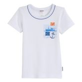 Ce tee-shirt garçon Absorba convient parfaitement pour le quotidien.  Il est à la fois hyper confortable et doux.  Il dispose d'un col rond rehaussé d'une ligne contrastante, de manches courtes et d'un imprimé placé sur la poitrine.  Etiquette cousue sur le côté.  Ce t-shirt de dessous Absorba pour