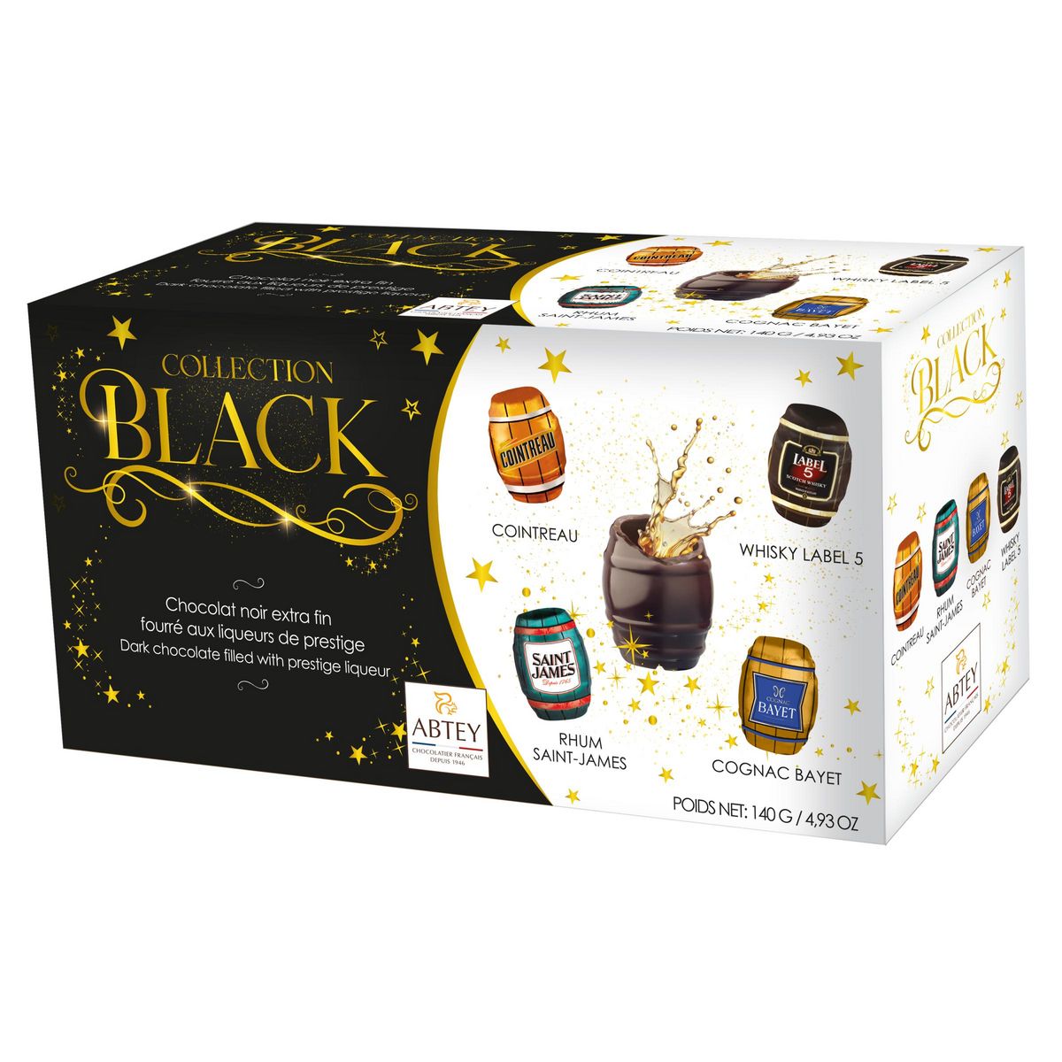 assortiment de chocolats sous aluminium fourrés aux liqueurs de connaisseurs (Cognac, Rhum, Whisky, Cointreau)
