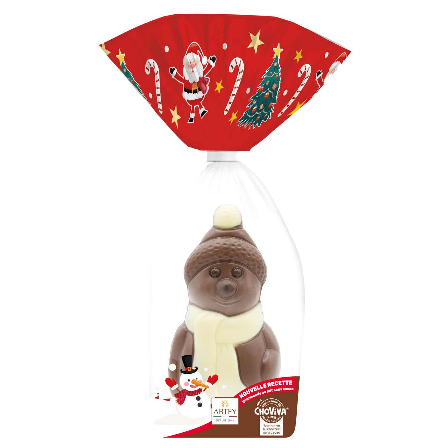 CHOVIVA : Alternative au chocolat sans cacao. Confiserie à base de graines de tournesol et de pépins de raisin. Moulage Bonhomme de neige