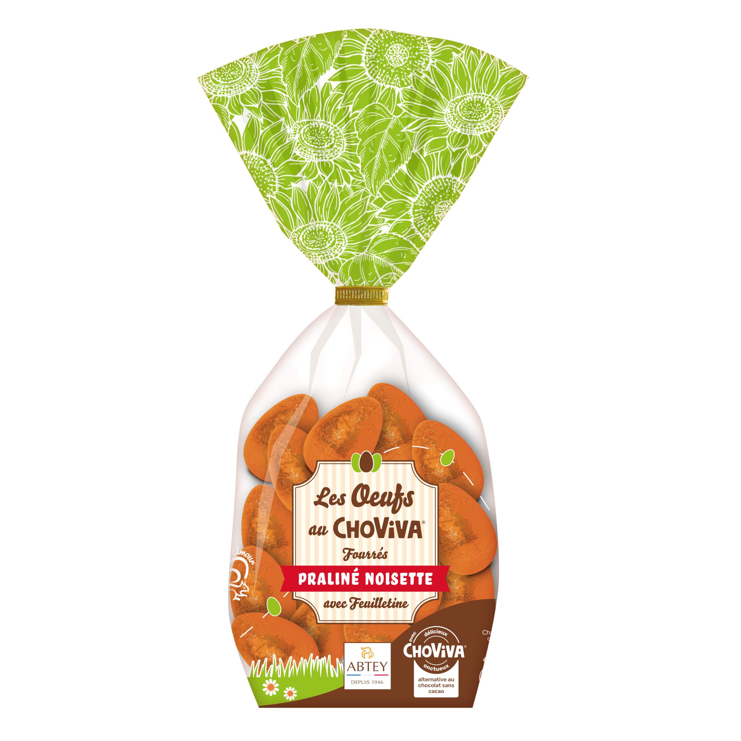 Oeufs au choviva fourrés au praliné noisette avec feuilletine