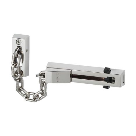 Caractéristiques techniquesChaÎne en acier renforcéeSécurité pour enfants : Le rail est équipé d'un cran d'arrêt à ressortFixation de chaÎne intégréeUtilisationPour les portes d'entrées de maisons et d'appartements