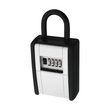 Caractéristiques techniquesBoÎtier métallique robusteClapet en zinc coulé sous pressionCode personnalisable à 4 chiffresClapet de protection avec mécanisme coulissantAvec anse pour une fixation sur la poignée de porte p. ex.Permet de déposer 14 cartes ou 20 clésDimensions extérieures du boÎtier: 85