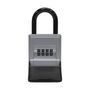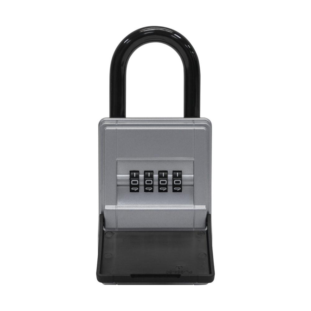 Caractéristiques techniquesBoÎtier métallique robusteCapuchon de fermeture en zinc moulé sous pression avec molettes à chiffres en plastiqueCode personnalisable à 4 chiffresClapet plastique protège conte l&lsquo,humidité et la saletéAvec anse pour une fixation sur la poignée de porte p. ex.Taille co