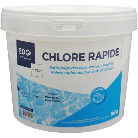 Ce chlore choc est sous forme de pastilles effervescentes de chlore rapide. Les pastilles sont idéales pour le rattrapage des eaux vertes et des eaux troubles. Le chlore rapide relève vite le taux de chlore de votre piscine. A noter que ce produit assure une désinfection choc de la piscine, il s'agit donc d'un traitement ponctuel.