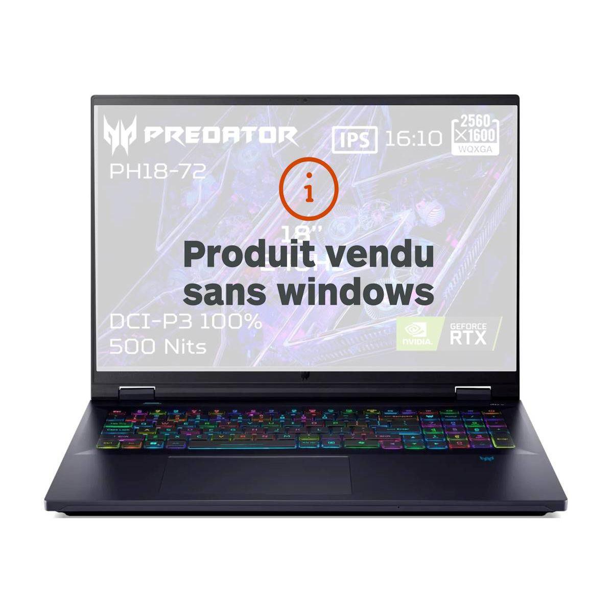 | Référence constructeur | Predator Helios 18 PH18-72-96SE Sans OS | |