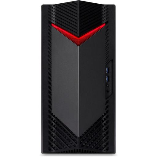 Conçu pour être à la fois robuste et élégant, l'Acer Nitro N50-130 présente un design en métal et plastique avec une finition matte et glossy. Le boîtier compact mesure 39,2 cm de hauteur, 17,5 cm de largeur et 38,6 cm de profondeur, ce qui le rend parfait pour les espaces de jeu modernes. La connectivité est assurée par divers ports, permettant une flexibilité maximale pour les périphériques externes.