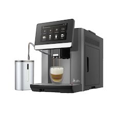 La machine à expresso Acopino Barletta est une machine entièrement automatique conçue pour offrir une expérience café de qualité. Elle dispose d'une capacité de 1,8 litre pouvant préparer jusquà 8 tasses, idéale pour la maison ou le bureau. Son design élégant en couleur anthracite sintègre parfaitement à tout environnement. La machine est équipée dun moulin à café intégré pour une fraîcheur optimale et dun écran tactile couleur de 7 pouces qui permet de personnaliser les préparations selon les préférences de chacun. Un système dalerte intelligent facilite l'entretien de lappariel tandis que le bac à lait isolé de 710 ml permet de réaliser des mousses parfaites. La puissance de la machine est de 1500 watts et elle pèse 13,5 kg, assurant robustesse et efficacité.