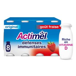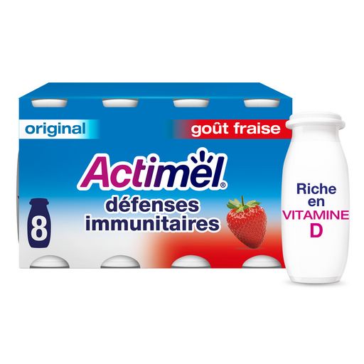 Actimel à boire c'est des produits laitiers nature et aromatisé à la fraise (à base d'arômes naturels) riches en vitamine D qui contribue au fonctionnement normal du système immunitaire. Ces recettes goût fraise, et nature, est source de calcium, vitamine B6 et protéines! Elles renferment un tas de bonnes choses dont des milliards de ferments L.casei Danone d'origine naturelle* ainsi que les ferments du yaourt. Actimel ce sont des bouteilles et des emballages en carton recyclables! Son format pratique est un allié de taille tout au long de la journée, parfait pour le petit-déjeuner comme pour vos pauses! *Comme tous les ferments du marché