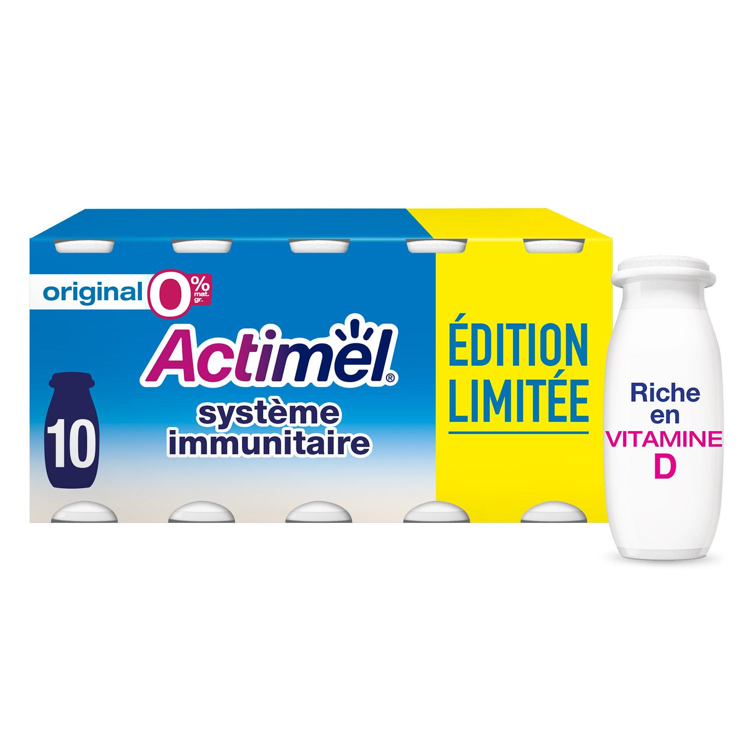 Actimel à boire nature 0% est un produit laitier avec 0% de matières grasses, et au goût sucré (grâce aux édulcorants). Il est riche en vitamine D qui contribue au fonctionnement normal du système immunitaire. Cette recette 0% est source de calcium, vitamine B6 et protéines! Il renferme un tas de bonnes choses dont des milliards de ferments L.casei Danone d'origine naturelle* ainsi que les ferments du yaourt. Actimel 0% ce sont des bouteilles et des emballages en carton recyclables! Son format pratique est un allié de taille tout au long de la journée, parfait pour le petit-déjeuner comme pour vos pauses! *Comme tous les ferments du marché
