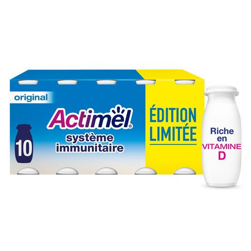 Actimel à boire nature est un produit laitier riche en vitamine D qui contribue au fonctionnement normal du système immunitaire. Cette recette nature, est source de calcium, vitamine B6 et protéines! Elle renferme un tas de bonnes choses dont des milliards de ferments L.casei Danone d'origine naturelle* ainsi que les ferments du yaourt. Actimel ce sont des bouteilles et des emballages en carton recyclables! Son format pratique est un allié de taille tout au long de la journée, parfait pour le petit-déjeuner comme pour vos pauses! *Comme tous les ferments du marché