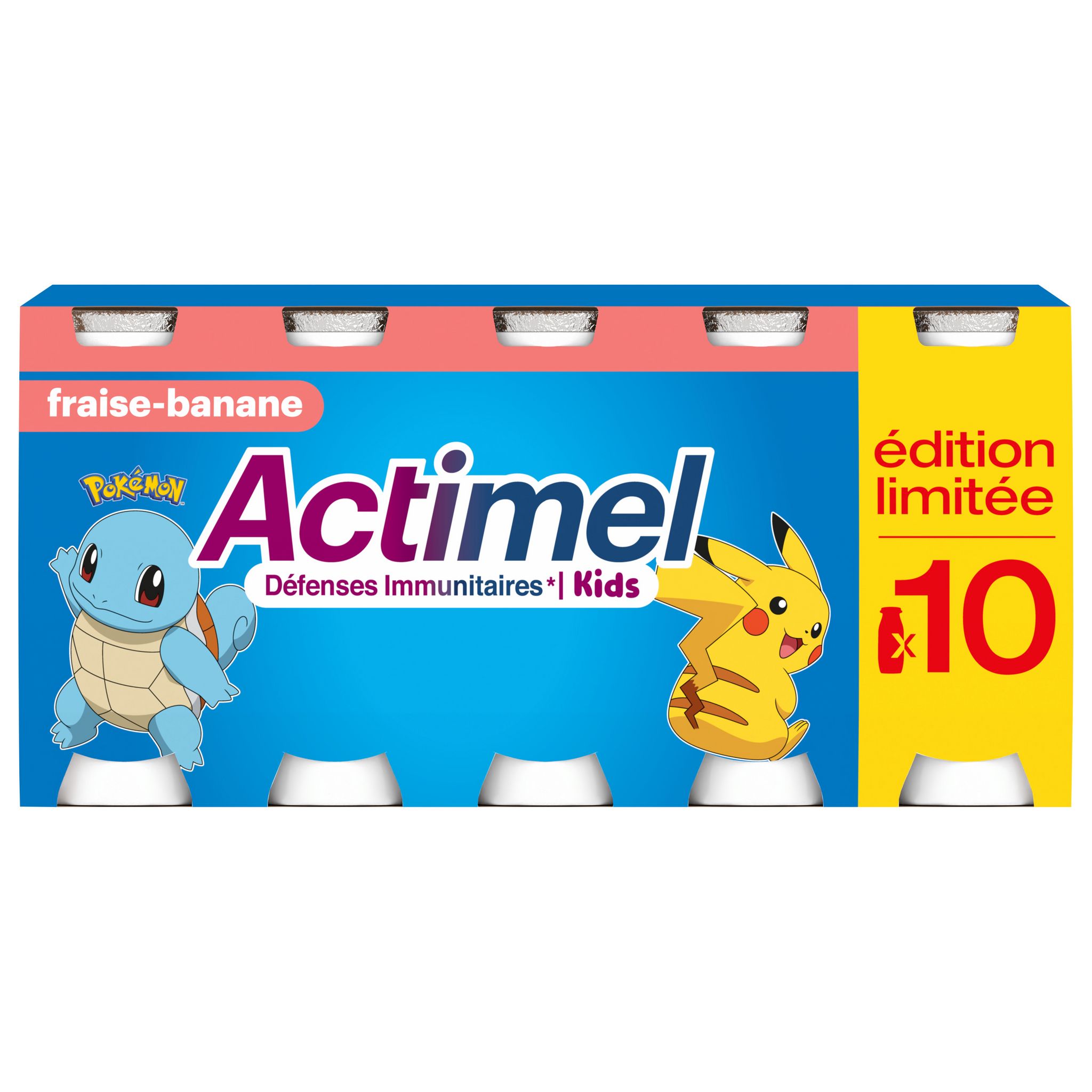 Actimel Fraise Banane, le petit geste immunité* des bonnes journées ! Lorsque tu bois ton Actimel, la vitamine D passe dans ton corps pour atteindre tes cellules immunitaires et les aider à bien fonctionner*. Il est enrichi en vitamine B6 & en calcium et renferme un tas de bonnes choses dont des millions de ferments L.casei exclusifs d'origine naturelle** ainsi que les ferments du yaourt. Son format pratique est un allié de taille tout au long de ta journée car il se garde jusqu'à 8h hors du frigo ! *La vitamine D contribue au fonctionnement normal du système immunitaire chez l'enfant. **Comme tous les ferments du marché.