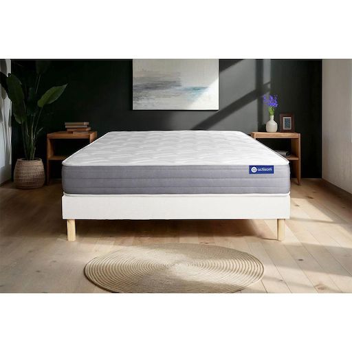 Ensemble matelas ACTILATEX DREAM Latex et mémoire de forme 140x200 cm 5zones de confort + sommier KIT blanc