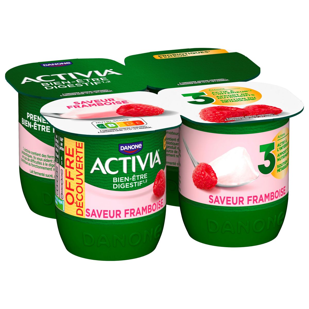 Activia yaourt saveur framboise c'est une recette au bifidus et aux ferments du yaourt, à la texture ferme et fondante. Sans arôme artificiels, ses ingrédients sont 100% d'origine naturelle. Conçu dans notre laiterie de Bailleul (59), ce pot contient du bon lait Français*, 5 ferments dont des milliards de probiotiques**. Il est idéal pour les fins de repas! *Ajout de lait écrémé concentré ou en poudre (Origine: UE) **Activia contient les ferments du yaourt : les probiotiques. Ils vous aident à la digestion du lactose de votre Activia en cas de difficulté à le digérer.