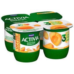 ACTIVIA yaourt aux fruits à l'abricot, c'est toute l'onctuosité d'ACTIVIA associée à de bons morceaux d'abricot. Cet Activia contient des ingrédients 100% d'origine naturelle, du bon lait entier français*, du bifidus et des milliards de ferments dont les probiotiques**. Une spécialité laitière conçue dans notre laiterie de Villecomtal-sur-Arros (32)! *Ajout de lait écrémé concentré ou en poudre (Origine: UE) **Activia contient les ferments du yaourt : les probiotiques. Ils vous aident à la digestion du lactose de votre Activia en cas de difficulté à le digérer.