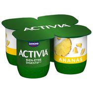 ACTIVIA yaourt aux fruits à l'ananas, c'est toute l'onctuosité d'ACTIVIA associée à de bons morceaux d'ananas. Cet Activia contient des ingrédients 100% d'origine naturelle, du bon lait entier français*, du bifidus et des milliards de ferments dont les probiotiques**. Une spécialité laitière conçue dans notre laiterie de Villecomtal-sur-Arros (32)! *Ajout de lait écrémé concentré ou en poudre (Origine: UE) **Activia contient les ferments du yaourt : les probiotiques. Ils vous aident à la digestion du lactose de votre Activia en cas de difficulté à le digérer.