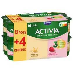 Activia yaourt saveurs vanille et framboise c'est une recette au bifidus et aux ferments du yaourt, à la texture ferme et fondante. Sans arôme artificiels, ses ingrédients sont 100% d'origine naturelle. Conçu dans notre laiterie de Bailleul (59), ce pot contient du bon lait Français*, 5 ferments dont des milliards de probiotiques**. Il est idéal pour les fins de repas! *Ajout de lait écrémé concentré ou en poudre (Origine: UE) **Activia contient les ferments du yaourt : les probiotiques. Ils vous aident à la digestion du lactose de votre Activia en cas de difficulté à le digérer.