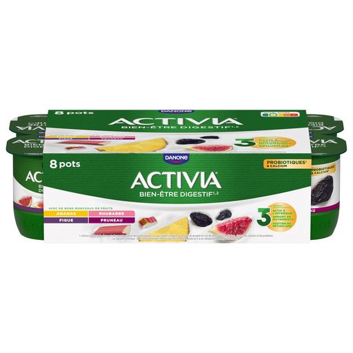 ACTIVIA yaourt aux fruits à l'ananas, à la rhubarbe, à la figue et au pruneau, c'est toute l'onctuosité d'ACTIVIA associée à de bons morceaux de fruits Cet Activia contient des ingrédients 100% d'origine naturelle, du bon lait entier français*, du bifidus et des milliards de ferments dont les probiotiques**. Un dessert conçu dans notre laiterie de Villecomtal-sur-Arros (32)! *Ajout de lait écrémé concentré ou en poudre (Origine: UE) **Activia contient les ferments du yaourt : les probiotiques. Ils vous aident à la digestion du lactose de votre Activia en cas de difficulté à le digérer.