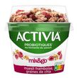 ACTIVIA Mix & Go* muesli framboise et graînes de chia, c'est l'onctuosité unique d'ACTIVIA associée au croquant de céréales et au goût de la framboise. Cet Activia source de fibres est à base de bon lait et de 5 ferments dont des milliards de probiotiques*! .Une recette gourmande source de fibres qui contribue à votre apport quotidien recommandé en fibres**. A déguster chez vous au petit déjeuner, déjeuner ou dans la journée. Pratique à emporte grâce à sa cuillère en bois intégrée. *Activia contient les ferments du yaourt : les probiotiques. Ils vous aident à la digestion du lactose de votre Activia en cas de difficulté à le digérer ** Apport quotidien recommandé = 30g (ANSES 2016)