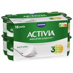 ACTIVIA Yaourt Nature Probiotiques*, c'est tout le plaisir d'une texture ferme et fondante alliée à la douceur ACTIVIA. Cet Activia est conçu dans notre laiterie de Bailleul (59) et contient uniquement 3 ingrédients qui sont 100% d'origine naturelle : du bon lait français*, 5 ferments dont des milliards de probiotiques** *Ajout de lait écrémé concentré ou en poudre (Origine: UE) **Activia contient les ferments du yaourt : les probiotiques. Ils vous aident à la digestion du lactose de votre Activia en cas de difficulté à le digérer.