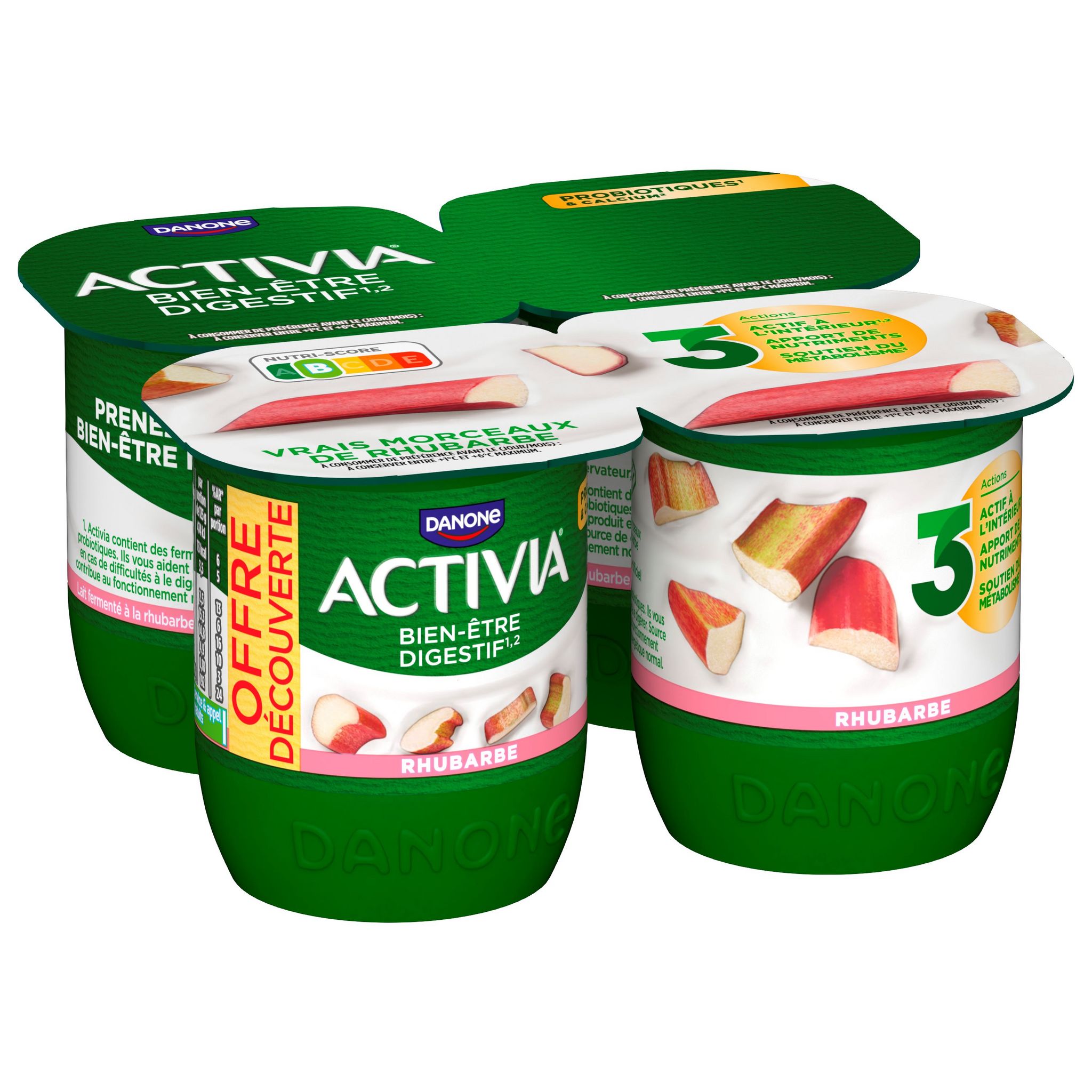 ACTIVIA yaourt aux fruits à la rhubarbe, c'est toute l'onctuosité d'ACTIVIA associée à de bons morceaux de rhubarbe. Cet Activia contient des ingrédients 100% d'origine naturelle, du bon lait entier français*, du bifidus et des milliards de ferments dont les probiotiques**. Une spécialité laitière conçue dans notre laiterie de Villecomtal-sur-Arros (32)! *Ajout de lait écrémé concentré ou en poudre (Origine: UE) **Activia contient les ferments du yaourt : les probiotiques. Ils vous aident à la digestion du lactose de votre Activia en cas de difficulté à le digérer.