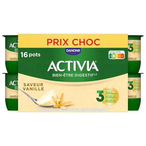 Activia yaourt saveur vanille c'est une recette au bifidus et aux ferments du yaourt, à la texture ferme et fondante. Sans arôme artificiels, ses ingrédients sont 100% d'origine naturelle. Conçu dans notre laiterie de Bailleul (59), ce pot contient du bon lait Français*, 5 ferments dont des milliards de probiotiques**. Il est idéal pour les fins de repas! *Ajout de lait écrémé concentré ou en poudre (Origine: UE) **Activia contient les ferments du yaourt : les probiotiques. Ils vous aident à la digestion du lactose de votre Activia en cas de difficulté à le digérer.
