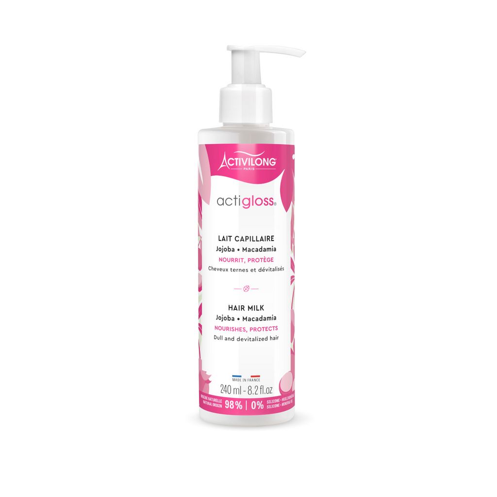 Actigloss Lait capillaire jojoba macadamia pour cheveux ternes et dévitalisés