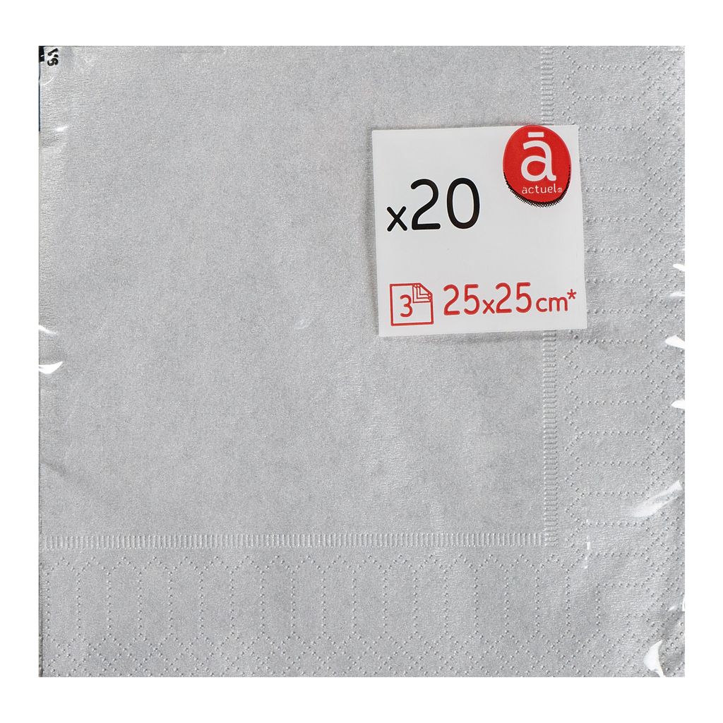 Actuel Serviettes en papier 25x25cm argent x20