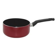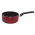 Casserole en aluminium rouge de 18 cm, compatible avec tous feux sauf induction. Revêtement antiadhésif, poignée fixe.