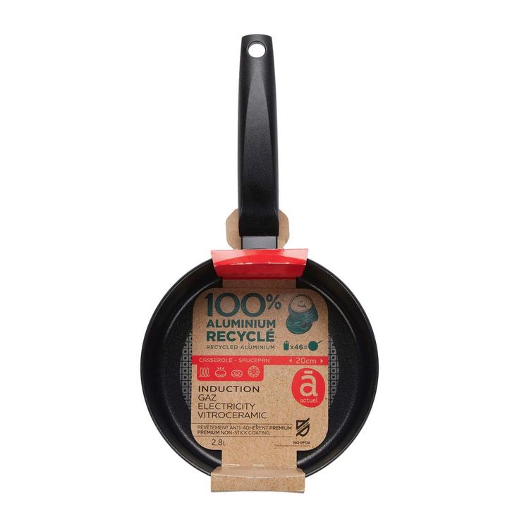 Cuisinez au quotidien avec la gamme ACTUEL en aluminium recyclé noir. Cette gamme est compatible avec tous les feux dont l'induction. Bénéficiez d'un confort de cuisson avec le revêtement anti adhérent qui permet aux aliments de ne pas accrocher lors de la cuisson. Poignée fixe. Bénéficiez d'un confort de cuisson grâce à la compatibilité au lave vaisselle.