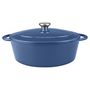 Cocotte tous feux dont induction ovale en fonte d'acier bleue et en émaille blanc.