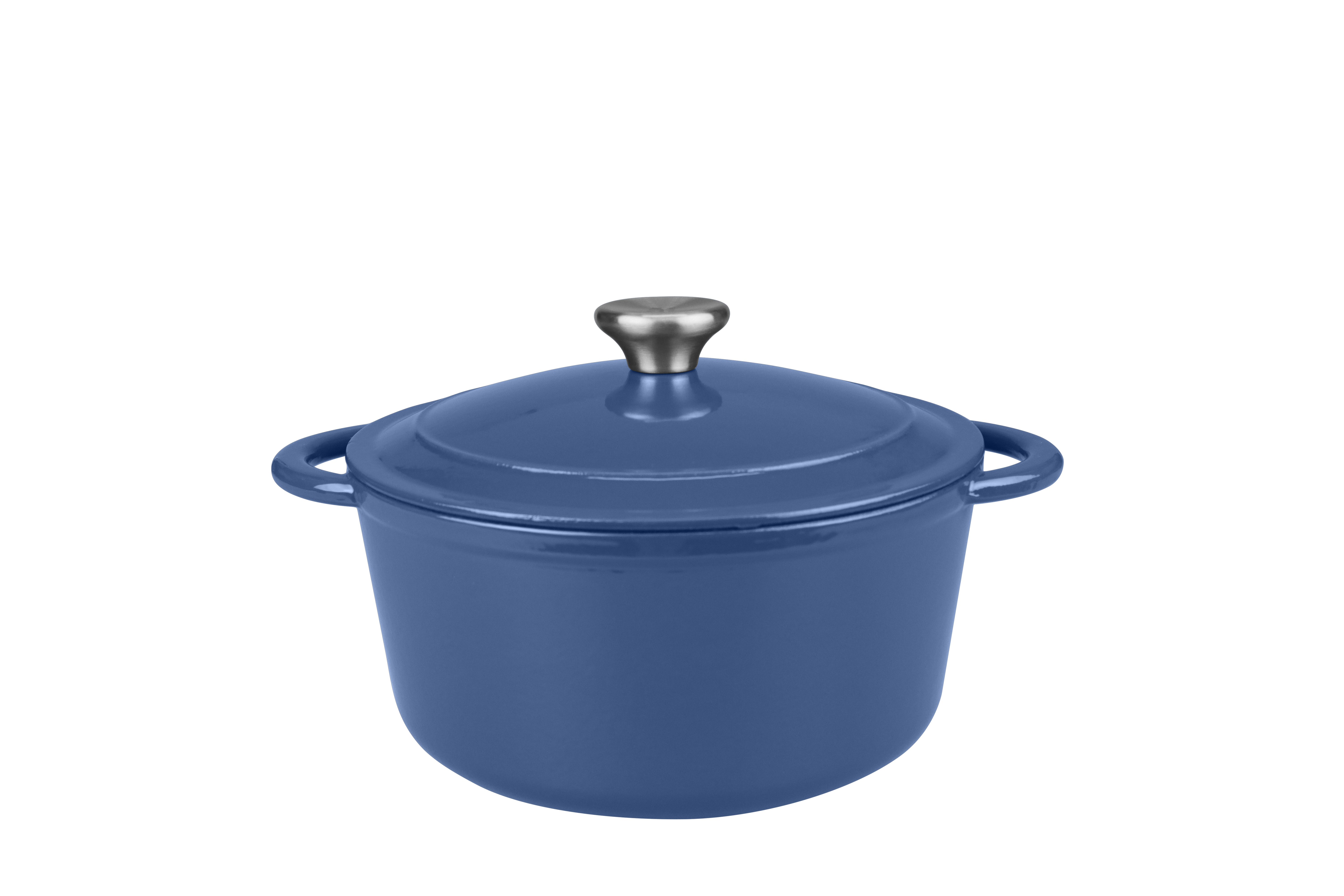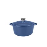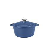 Cocotte ronde induction en fonte d'acier bleue émaille blanc 5 litres