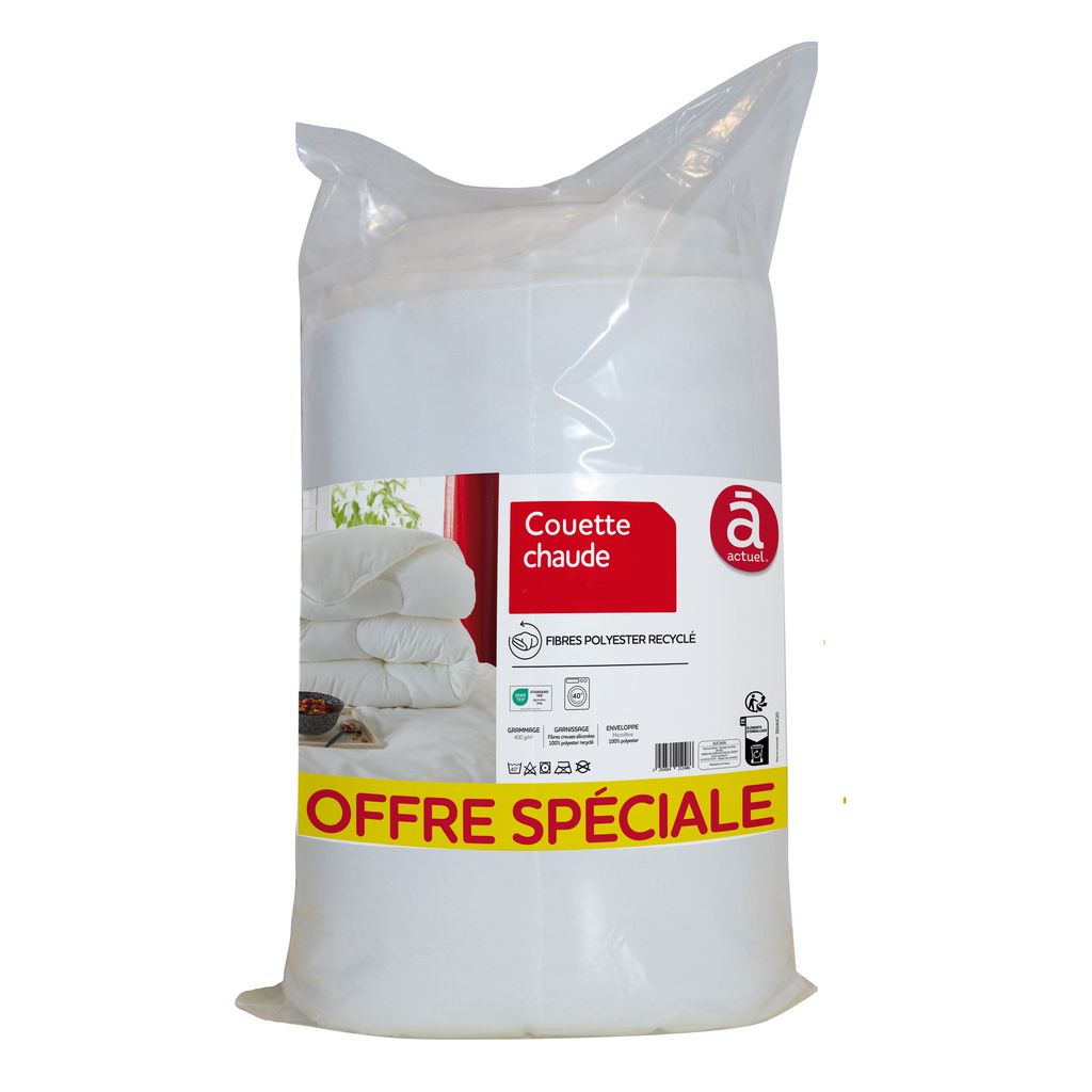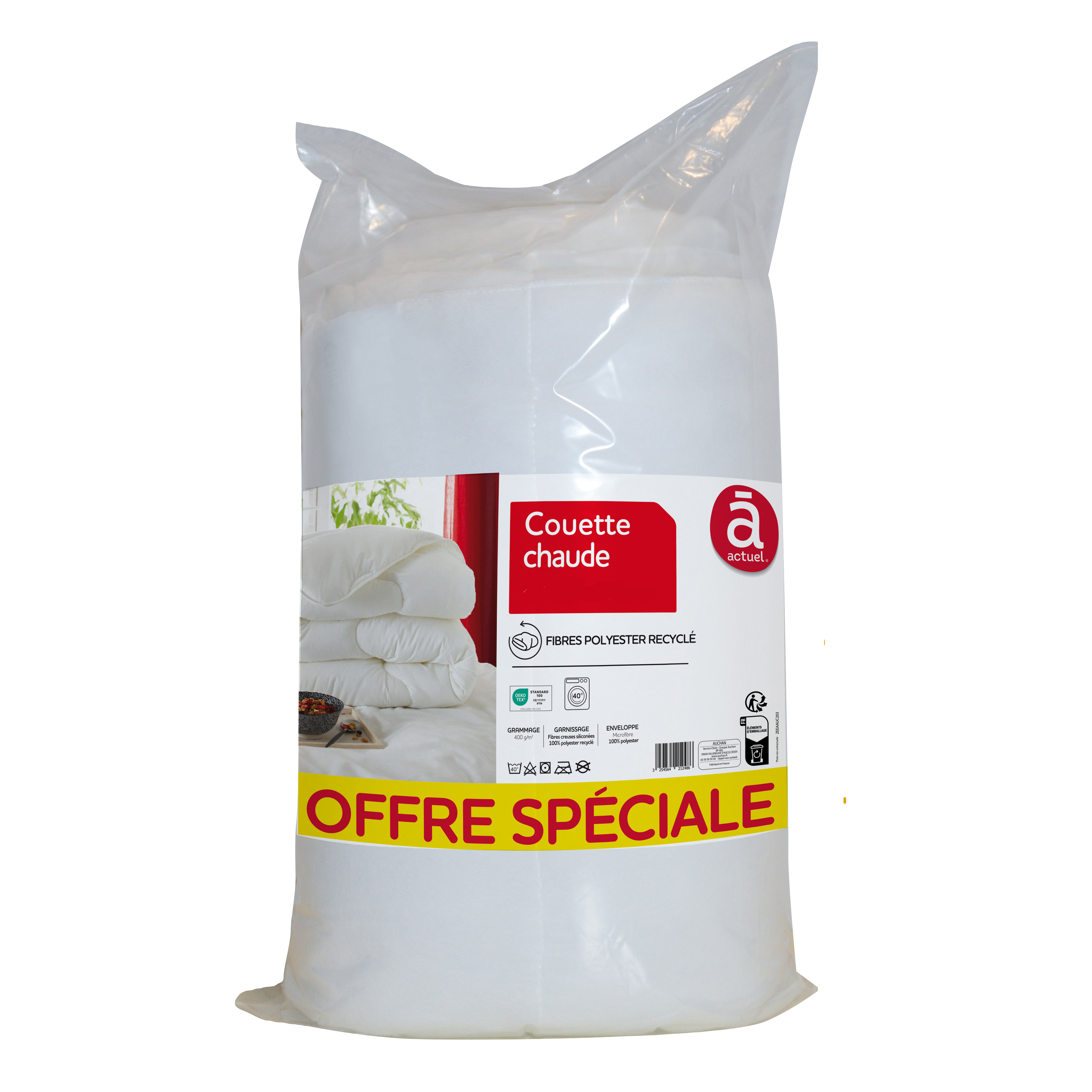 ENVELOPPE MICROFIBRE 100% POLYESTER - GARNISSAGE 100% POLYESTER SILICONE CREUX RECYCLE 400g/m² - PIQUAGE LIGNES - FINITION SURJET ROULEE SOUS SACHET IMPRIME ACTUEL