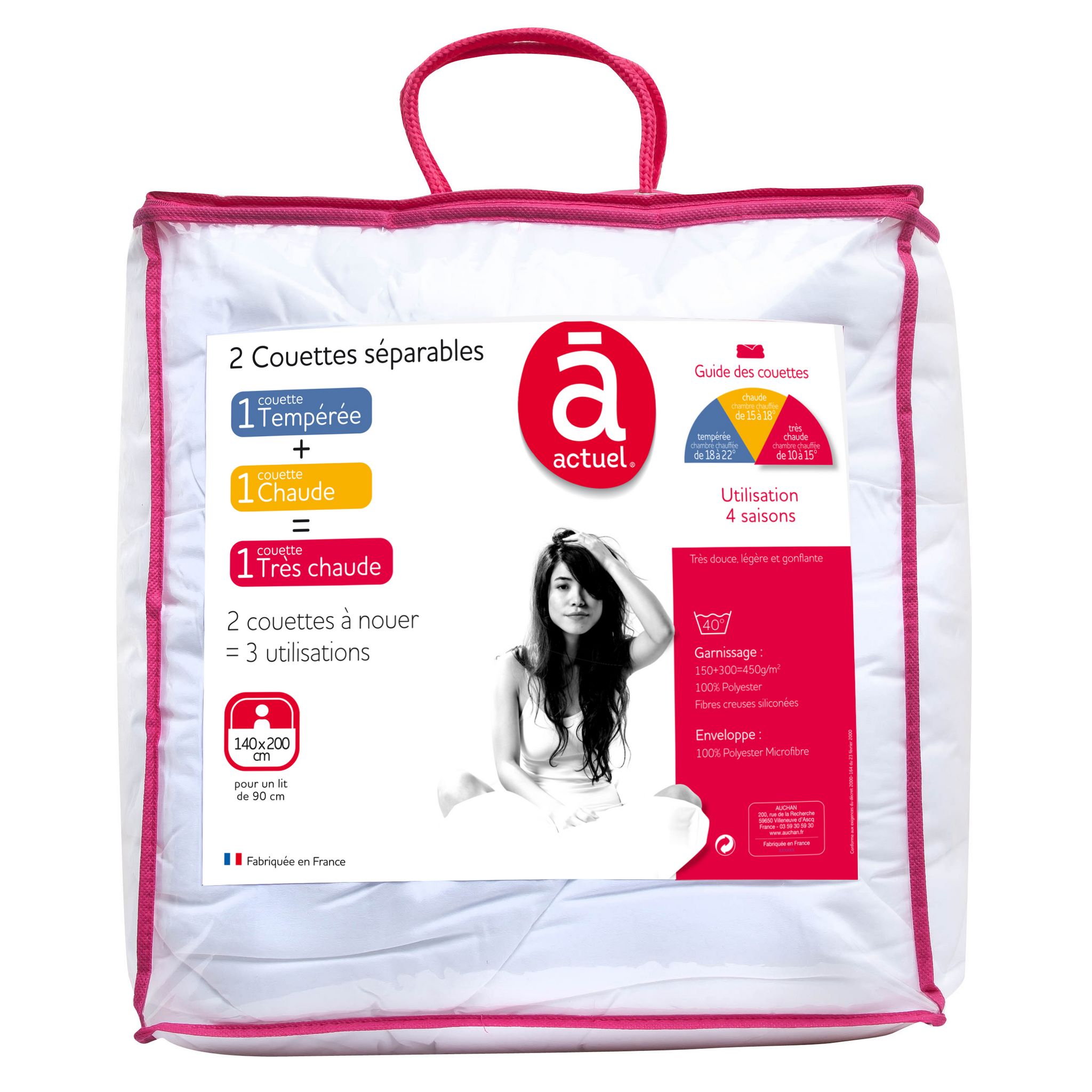 En savoir +Couette séparable 4 saisons. 1 couette été + 1 couette hiver = 1 couette toutes saisons à adapter selon les températures et selon vos besoins. Deux couettes en une seule ! Fabrication française, qualité garantie.