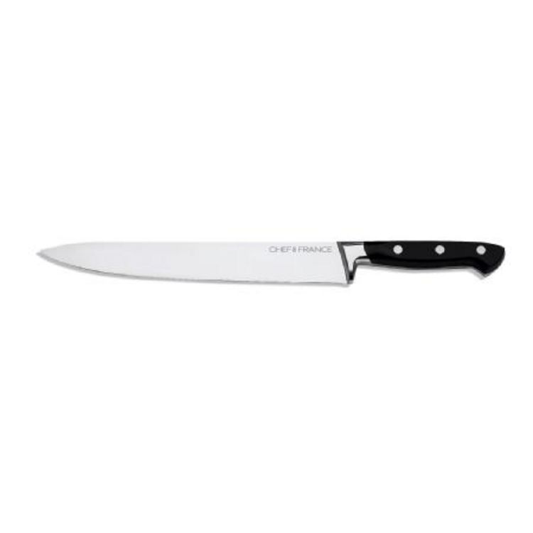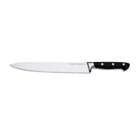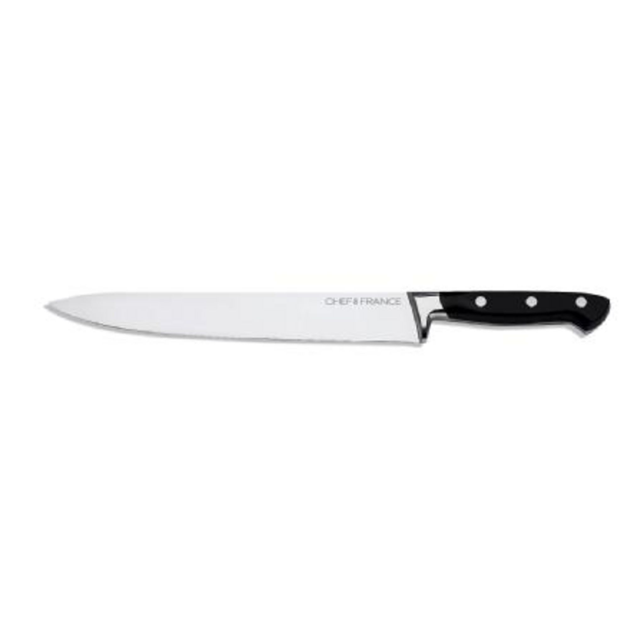 Dans votre cuisine, c'est vous qui décidez. Alors tranchez dans le vif et adoptez ce couteau de cuisine 25 cm en inox entièrement forgé. Manche en polyacétal avec 3 rivets aluminium pour une excellente tenue aux chocs. Lame en inox, résistante et tranchante. Design élégant et épuré. Ce couteau de cuisine en inox est lavable en machine.