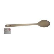 Ne faites pas comme moi, vérifiez la taille avant de commander. Cette cuillère est vraiment longue et donc pas forcément super pratique à utiliser. Elle n'est pas vernie non plus, ou du moins je n'ai pas l'impression. J'ai peur qu'elle prenne les odeurs ou les couleurs (évitez de servir des carottes ou de la betterave peut-être) à terme. J'aurais pu me rabattre sur un usage décoratif en utilisant un pyrograveur ou des feutres acryliques, mais malheureusement le logo de la marque est bien trop visible pour ça. Bref, un achat que je regrette un peu...