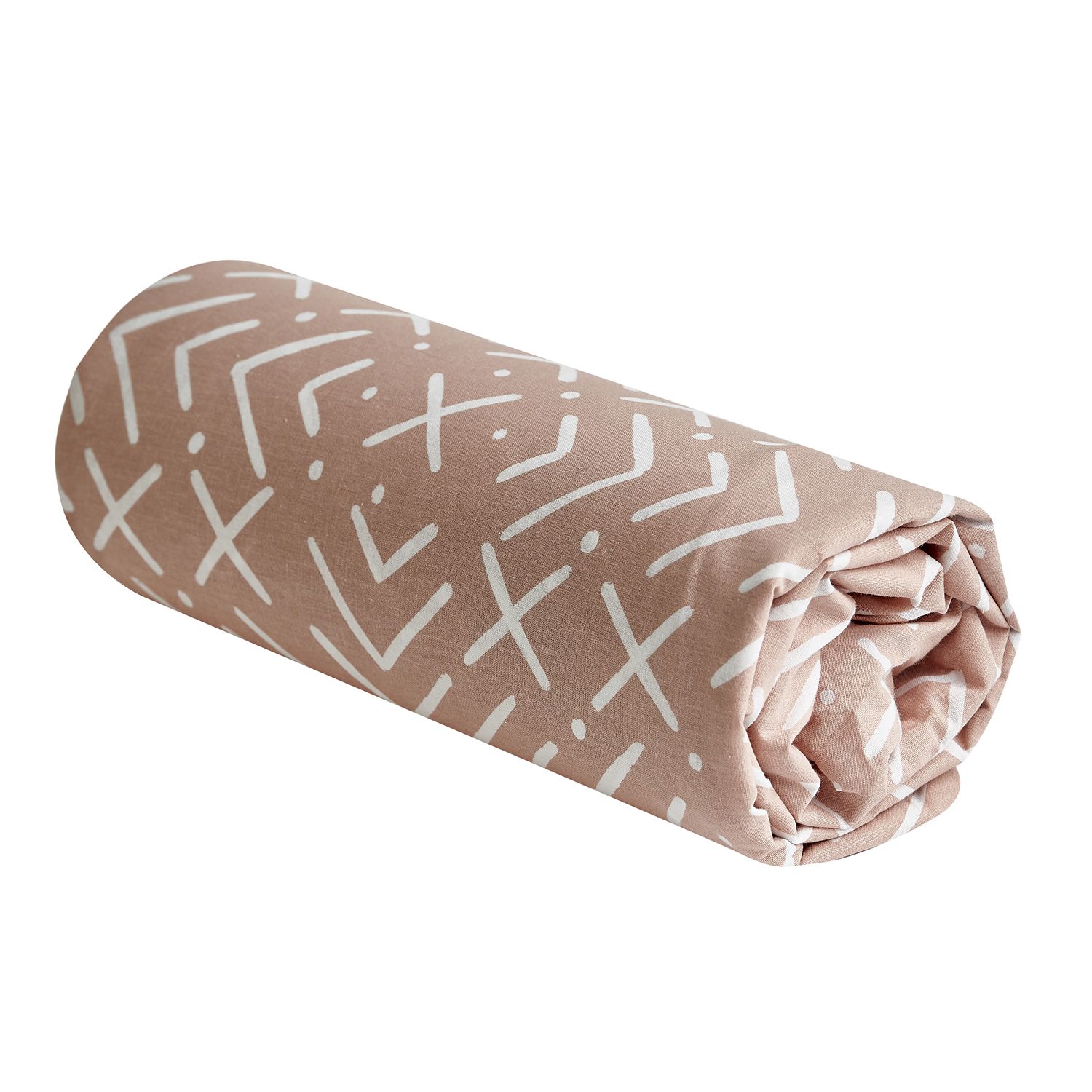 Drap-housse pour lit 1 ou 2 personne(s) en toile pur coton tissée bien serrée, douce au toucher, confortable et résistante. Tout imprimé d'un petit motif graphique sur fond orangé il complète en beauté les parures housse de couette et drap INAYA.