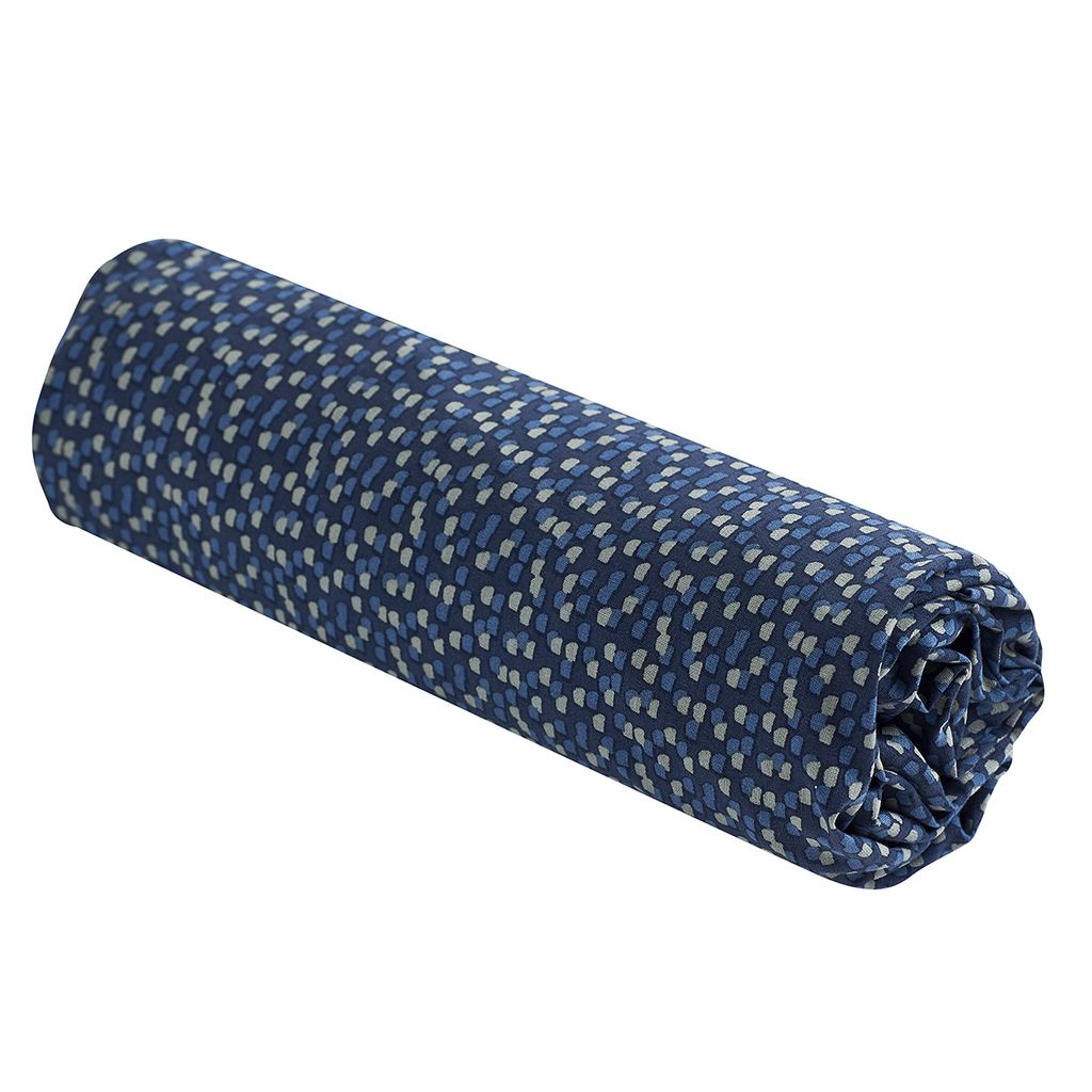 Drap-housse pour lit 1 ou 2 personne(s) en toile polyester/coton douce au toucher. Tout imprimé d'un petit motif en camaïeu de bleus ce drap-housse complète en beauté la parure housse de couette SIRINE. Côté entretien, c'est très simple : séchage rapide, repassage léger, et le tour est joué !