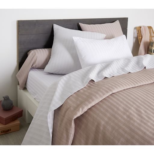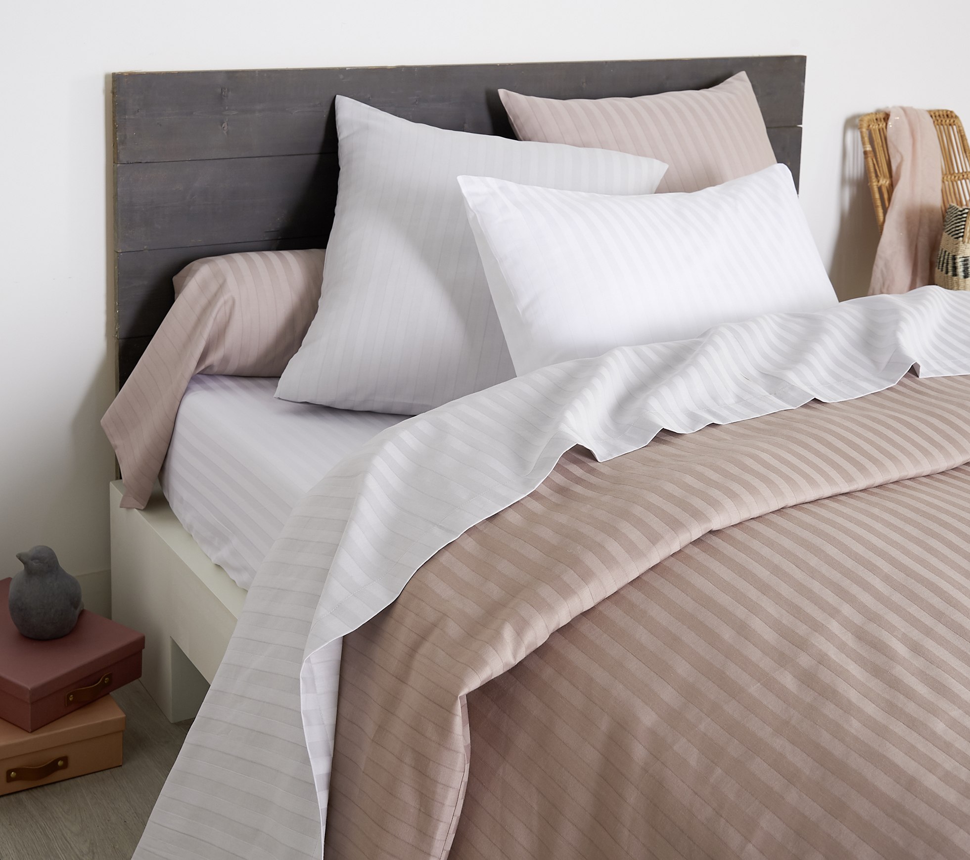 Le satin de coton, tout comme la percale, est un procédé de tissage très fin et très serré. Le toucher du satin est soyeux, mais contrairement au satin de polyester, il ne glisse pas. Cette matière en pur coton apportera brillance à votre linge de lit tout en restant léger et respirant grâce à sa fibre naturelle. Le satin de coton permet de faire parfois des jeux de lumières et on peut obtenir des bandes mates et brillantes créant ainsi un dessin pour plus d'élégance. Le satin de coton est très qualitatif et durera dans le temps. Les fibres serrées associées à la qualité du coton utilisé font du satin un tissu particulièrement doux à la durée de vie exemplaire.
