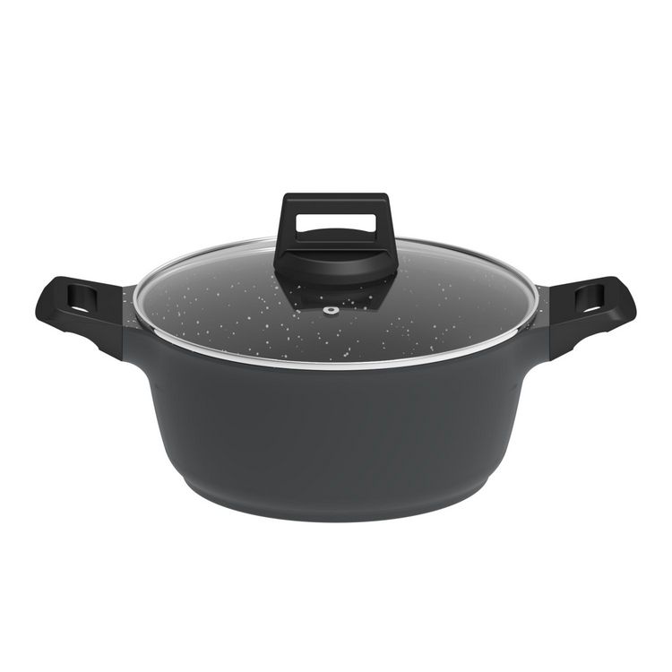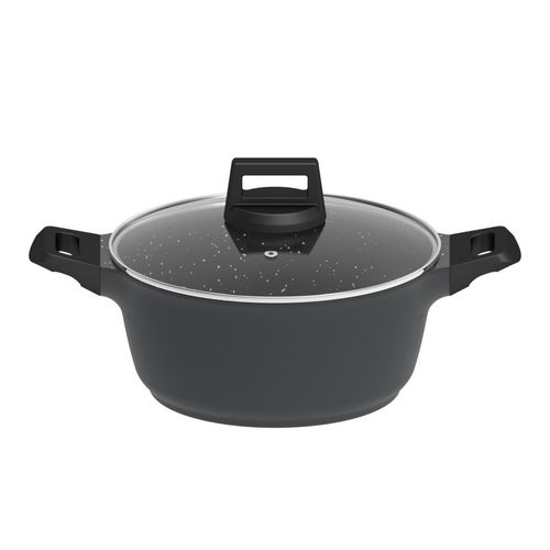 Faitout 20 cm - Noir, compatible tous feux dont induction. Conçu en aluminium avec revêtement antiadhésif pour une cuisson sans accrocs. Doté d'un couvercle en verre pour surveiller vos plats et de poignées en bakélite pour une prise en main sécurisée.