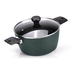 Couleur tendance pour ce faitout 24 cm avec couvercle en verre tous feux dont induction avec 2 poignées fixes en bakélite. Fabriqué en aluminium 100% recyclé et revêtement intérieur en céramique. Compatible lave-vaisselle.
