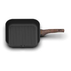 Grill induction de 28x28 cm, couleur noir. Compatible avec tous feux dont induction. Revêtement antiadhésif pour une cuisson sans accroc. Fabriqué en aluminium avec poignée fixe pour une manipulation sûre.